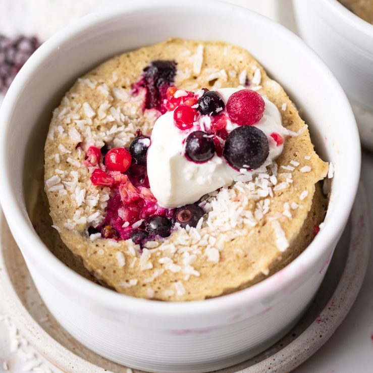 - Top with some extra berries, coconut and a dollop of yoghurt (if using) before tucking in.