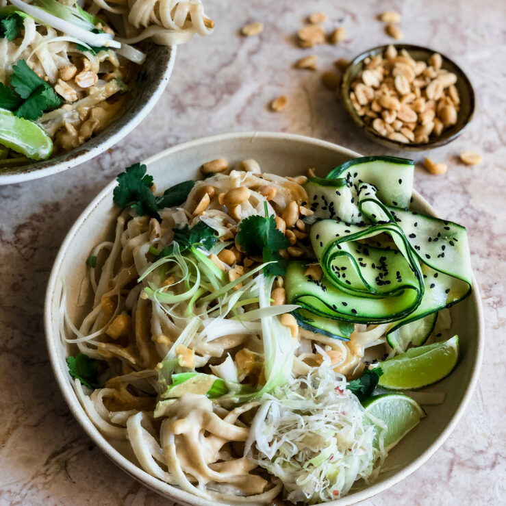There’s your typical noodle bowl and then there’s this gut-nourishing, plant-diverse satay sensation. Now, don’t be fooled — this dish is incredibly simple to make. The bare bones are just peanut butter, soy and coconut milk. Everything else just intensifies the flavour and adds to your weekly plant point total.